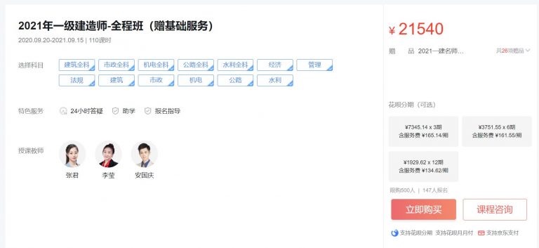 2021年一级建造师全程班