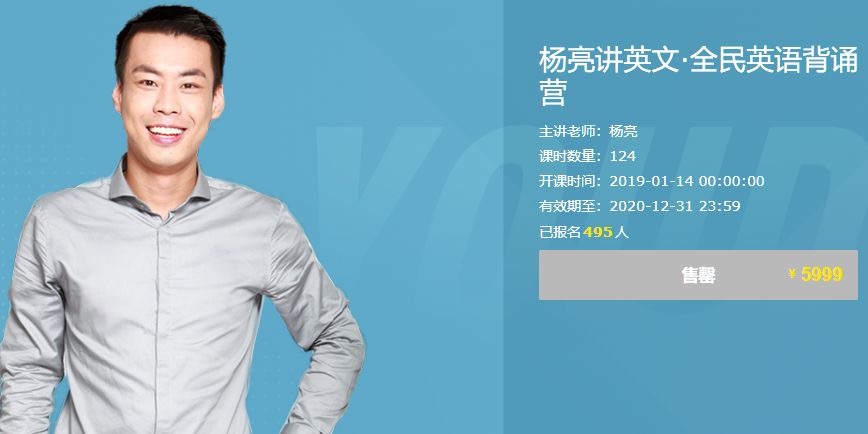 顶级资源站 » 杨亮讲英文:全民英语背诵营,单词记忆培训视频 价值5999元