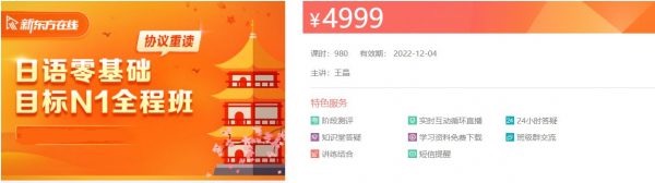 新东方-日语零基础目标N1全程班-课程官方售价4999元