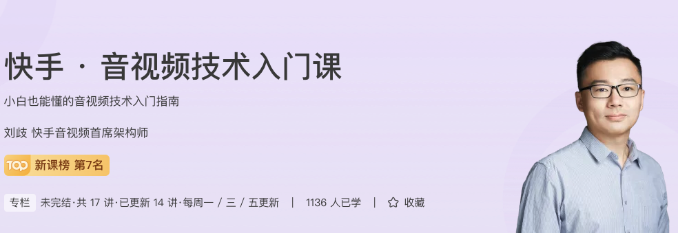 顶级资源站 » 专栏课-刘歧-快手 · 音视频技术入门课(9章)