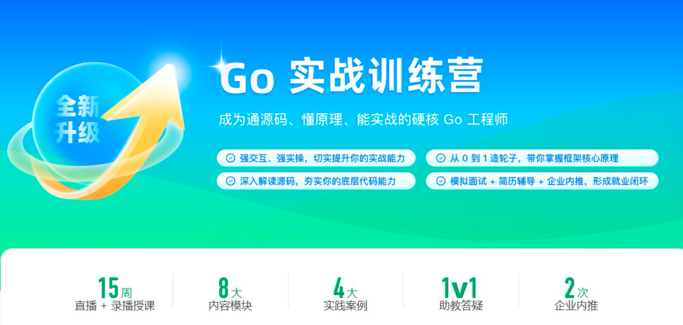 本课程来自极客时间 Go 实战训练营0期(13周)-价值5999元,文章底部附下载地址。